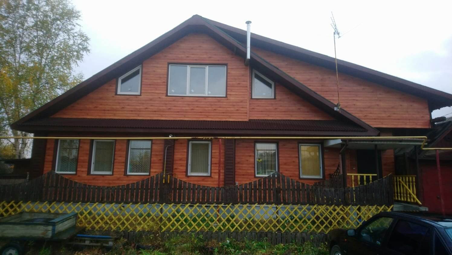 Дом, обшитый профнастилом С-8 в оттенке под дерево