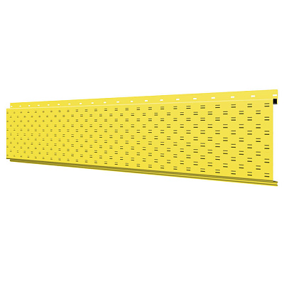 Линеарная потолочно-стеновая панель с ПЕРФОРАЦИЕЙ для вентиляции цвет RAL1018 Желтый применяется в качестве софитов для подшивы крыши, наружной и внутренней отделки потолков, стен, фронтонов фасада дома в Калининграде.